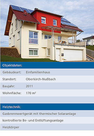 Einsatz von Heizkörpern in Kombination mit einem Gasbrennwertgerät sowie einer Mikro-KWK-Anlage bei der Modernisierung eines Einfamilienhauses.
