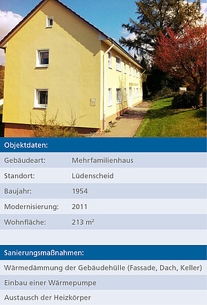 Die Wohnungsgenossenschaft Lüdenscheid eG hat in den vergangenen Jahren etliche Gebäude energetisch saniert. Dank Dämmmaßnahmen und neuen Heizanlagen wurden die Heizkosten deutlich gesenkt, beispielsweise in der Friesenstraße. Eine effiziente Wärmepumpe und attraktive Heizkörper sorgen hier für behagliche Wärme.